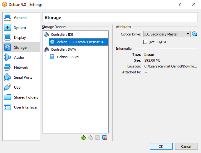 - select file location for Debian 9.8 but the default location is fine just leave it as default.
