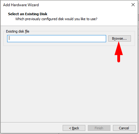 #6. In this Step, it will ask you to Select A Disk, So, here you will see three options and you have to select the second option which is Use an Existing Virtual Disk then click the Next button,