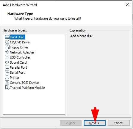 #5. So here you need to Add a new Hard Disk / MacOS Mojave VMDK File. therefore, choose Hard Disk then click the Next button. after that, select SATA for Hard Disk and click the Next button.
