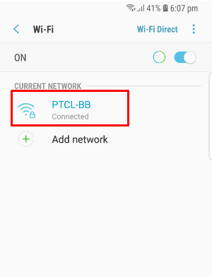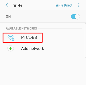 Step 2. here I find two wifi which is near to me but I will hack the PTCl-BB which is inside the red rectangle. click on the wifi name to open it.